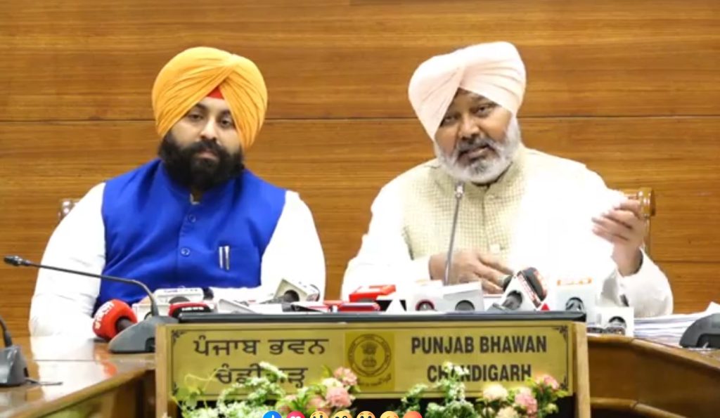 ਪੰਜਾਬ ਮੰਤਰੀ ਮੰਡਲ ਦੀ ਅਹਿਮ ਮੀਟਿੰਗ ਅੱਜ ਮੁੱਖ ਮੰਤਰੀ ਭਗਵੰਤ ਮਾਨ ਦੀ ਅਗਵਾਈ ਵਿੱਚ ਹੋਈ। ਮੰਤਰੀ ਮੰਡਲ ਵਿਚ ਕਈ ਵੱਡੇ ਫੈਸਲੇ ਲਏ ਗਏ। ਮੀਟਿੰਗ ਤੋਂ ਬਾਅਦ ਮੰਤਰੀ ਮੰਡਲ ਦੇ ਫੈਸਲਿਆਂ ਬਾਰੇ ਵਿੱਤ ਮੰਤਰੀ ਹਰਪਾਲ ਸਿੰਘ ਚੀਮਾ ਅਤੇ ਸਿੱਖਿਆ ਮੰਤਰੀ ਹਰਜੋਤ ਸਿੰਘ ਬੈਂਸ ਵੱਲੋਂ ਪ੍ਰੈਸ ਕਾਨਫਰੰਸ ਕਰਕੇ ਜਾਣਕਾਰੀ ਦਿੱਤੀ। ਮੰਤਰੀ ਮੰਡਲ ਦੀ ਮੀਟਿੰਗ ’ਚ ਸੂਬੇ ਦੀ ਨਵੀਂ ਸਨਅਤੀ ਪਾਲਸੀ ਨੂੰ ਪ੍ਰਵਾਨਗੀ ਦੇ ਦਿੱਤੀ ਹੈ।
