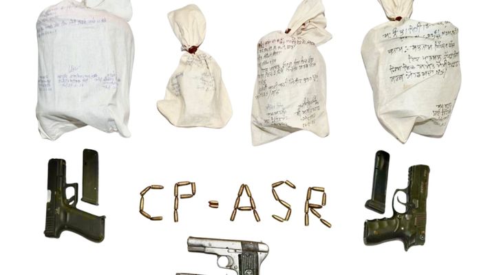 ਇੱਕ ਵੱਡੀ ਸਫਲਤਾ ਹਾਸਲ ਕਰਦੇ ਹੋਏ, ਅੰਮ੍ਰਿਤਸਰ ਕਮਿਸ਼ਨਰੇਟ ਪੁਲਿਸ ਵੱਲੋਂ ਸਰਹੱਦ ਪਾਰੋਂ ਨਸ਼ੀਲੇ ਪਦਾਰਥਾਂ ਅਤੇ ਗੈਰ-ਕਾਨੂੰਨੀ ਹਥਿਆਰਾਂ ਦੀ ਤਸਕਰੀ ਕਰਨ ਵਾਲੇ ਦੋ ਸੰਗਠਿਤ ਮਾਡਿਊਲਾਂ ਦਾ ਪਰਦਾਫਾਸ਼ ਕੀਤਾ ਗਿਆ ਅਤੇ ਕੁੱਲ 10 ਮੁਲਜ਼ਮਾਂ ਨੂੰ ਗ੍ਰਿਫ਼ਤਾਰ ਕਰਕੇ 5.438 ਕਿਲੋਗ੍ਰਾਮ ਹੈਰੋਇਨ, 3 ਆਧੁਨਿਕ ਪਿਸਤੌਲ (ਇੱਕ ਗਲੌਕ 9mm, ਇੱਕ ਜ਼ਿਗਾਨਾ 9mm, ਇੱਕ .32 ਬੋਰ), 34 ਜ਼ਿੰਦਾ ਕਾਰਤੂਸ, ਅਤੇ 4500 ਰੁਪਏ ਡਰੱਗ ਮਨੀ ਬਰਾਮਦ ਕੀਤੀ ਗਈ।