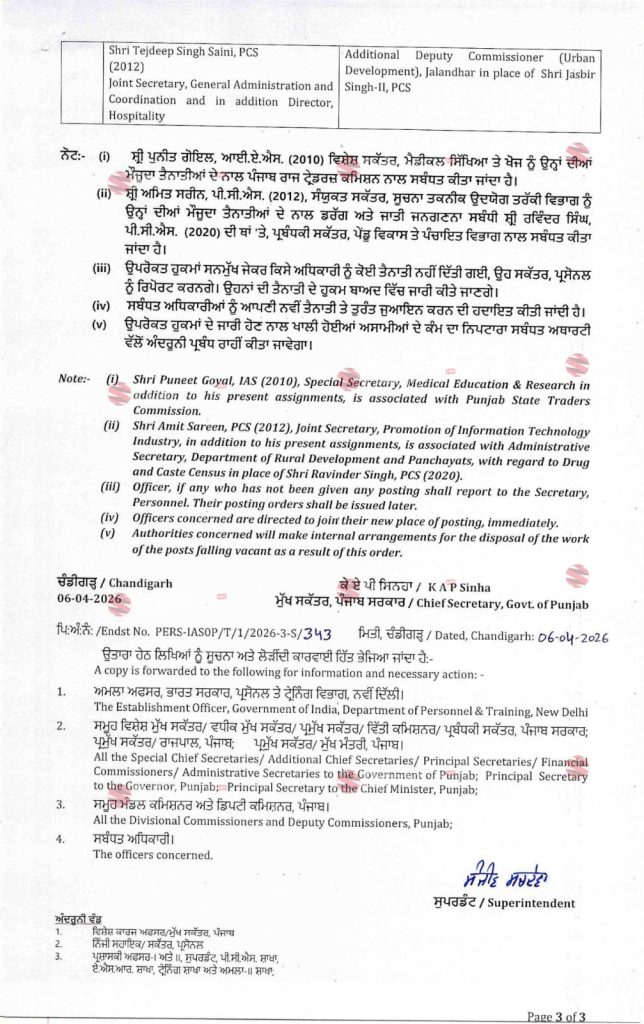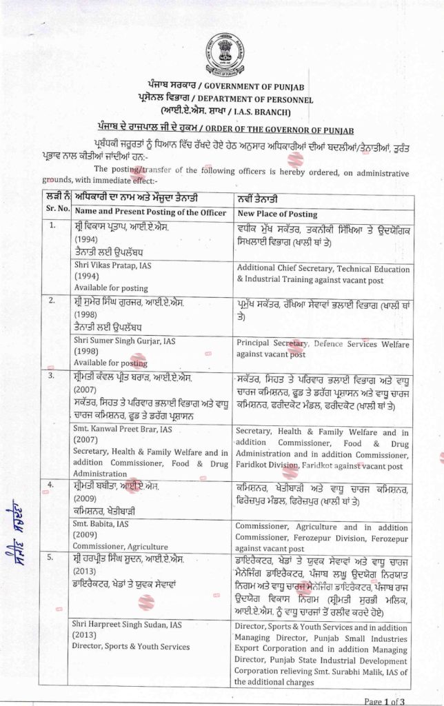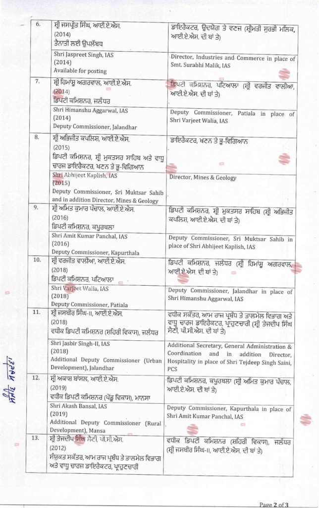 ਪੰਜਾਬ ਸਰਕਾਰ ਵੱਲੋਂ 13 IAS ਤੇ PCS ਅਧਿਕਾਰੀਆਂ ਦੇ ਤਬਾਦਲੇ