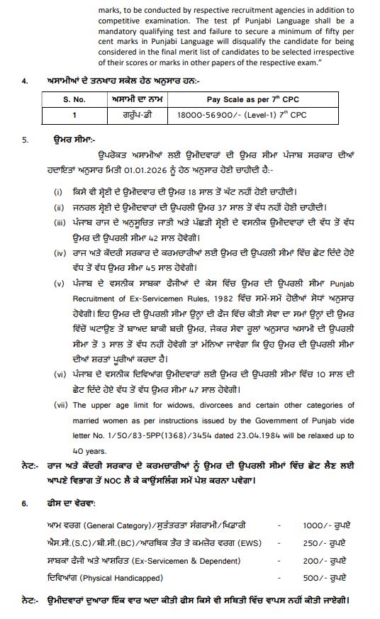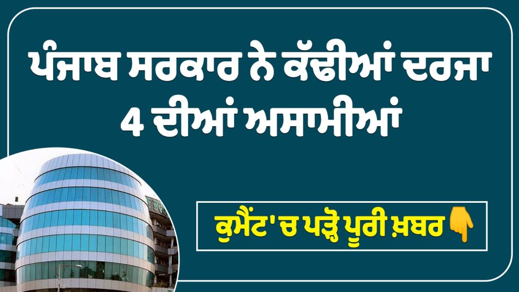 ਪੰਜਾਬ ਸਰਕਾਰ ਵੱਲੋਂ ਵੱਖ ਵੱਖ ਵਿਭਾਗਾਂ ਵਿਚ ਦਰਜਾ ਚਾਰ ਦੀਆਂ ਅਸਾਮੀਆਂ ਲਈ ਅਰਜ਼ੀਆਂ ਦੀ ਮੰਗ ਕੀਤੀ ਗਈ ਹੈ। ਪੰਜਾਬ ਸਰਕਾਰ ਵੱਲੋਂ ਅਧੀਨ ਸੇਵਾਵਾਂ ਚੋਣ ਬੋਰਡ ਰਾਹੀਂ ਅਰਜ਼ੀਆਂ ਦੀ ਮੰਗ ਕੀਤੀ ਗਈ ਹੈ। ਯੋਗ ਉਮੀਦਵਾਰ ਭਲਕੇ 27 ਫਰਵਰੀ 2026 ਤੋਂ 20 ਮਾਰਚ 2026 ਤੱਕ ਆਨਲਾਈਨ ਅਪਲਾਈ ਕਰ ਸਕਦੇ ਹਨ।
