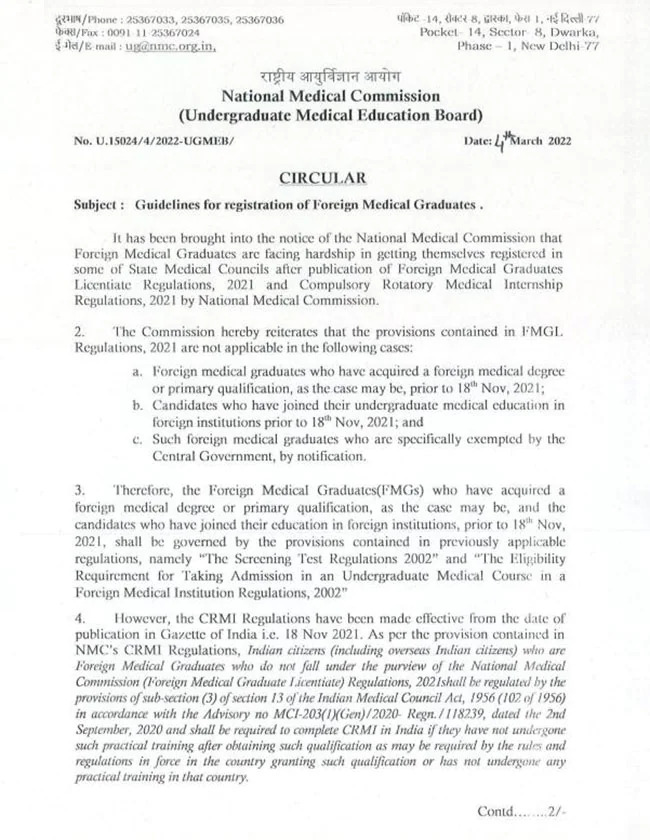 NMC ਨੇ ਅੱਗੇ ਦੱਸਿਆ ਕਿ ਸੂਬੇ ਦੇ ਕੌਂਸਲ ਇਸ ਗੱਲ ਦਾ ਧਿਆਨ ਰੱਖੇਗੀ ਕਿ ਯੂਕਰੇਨ ਤੋਂ ਭਾਰਤ ਆਏ ਵਿਦਿਆਰਥੀ NBE ਦੁਆਰਾ ਕਰਵਾਈ ਗਈ FMGE ਪ੍ਰੀਖਿਆ ਪਾਸ ਕਰ ਚੁੱਕੇ ਹਨ। ਜੇਕਰ ਵਿਦਿਆਰਥੀ ਸਾਰੇ ਯੋਗਤਾ ਮਾਪਦੰਡਾਂ ਨੂੰ ਪੂਰਾ ਕਰਦੇ ਹਨ, ਤਾਂ ਉਨ੍ਹਾਂ ਨੂੰ ਸਟੇਟ ਮੈਡੀਕਲ ਕੌਂਸਲ ਦੁਆਰਾ 12-ਮਹੀਨੇ ਦੀ ਇੰਟਰਨਸ਼ਿਪ ਲਈ ਅੰਤਰਿਮ ਰਜਿਸਟ੍ਰੇਸ਼ਨ ਦਿੱਤੀ ਜਾਵੇਗੀ। NMC ਨੇ ਅੱਗੇ ਦੱਸਿਆ ਕਿ ਸਟੇਟ ਕੌਂਸਲਾਂ ਇਸ ਗੱਲ ਦਾ ਵੀ ਧਿਆਨ ਰੱਖਣਗੀਆਂ ਕਿ ਕਾਲਜ ਇੰਟਰਨਸ਼ਿਪ ਨੂੰ ਪੂਰਾ ਕਰਨ ਲਈ ਵਿਦਿਆਰਥੀਆਂ ਤੋਂ ਕੋਈ ਫੀਸ ਨਾ ਲਵੇ। ਸਰਕੂਲਰ ਵਿੱਚ ਕਿਹਾ ਗਿਆ ਹੈ ਕਿ ਵਿਦੇਸ਼ੀ ਮੈਡੀਕਲ ਗ੍ਰੈਜੂਏਟਾਂ ਨੂੰ ਦਿੱਤਾ ਜਾਣ ਵਾਲਾ ਵਜ਼ੀਫ਼ਾ ਵੀ ਭਾਰਤ ਦੇ ਸਰਕਾਰੀ ਕਾਲਜਾਂ ਦੇ ਮੈਡੀਕਲ ਵਿਦਿਆਰਥੀਆਂ ਦੇ ਬਰਾਬਰ ਹੋਵੇਗਾ।